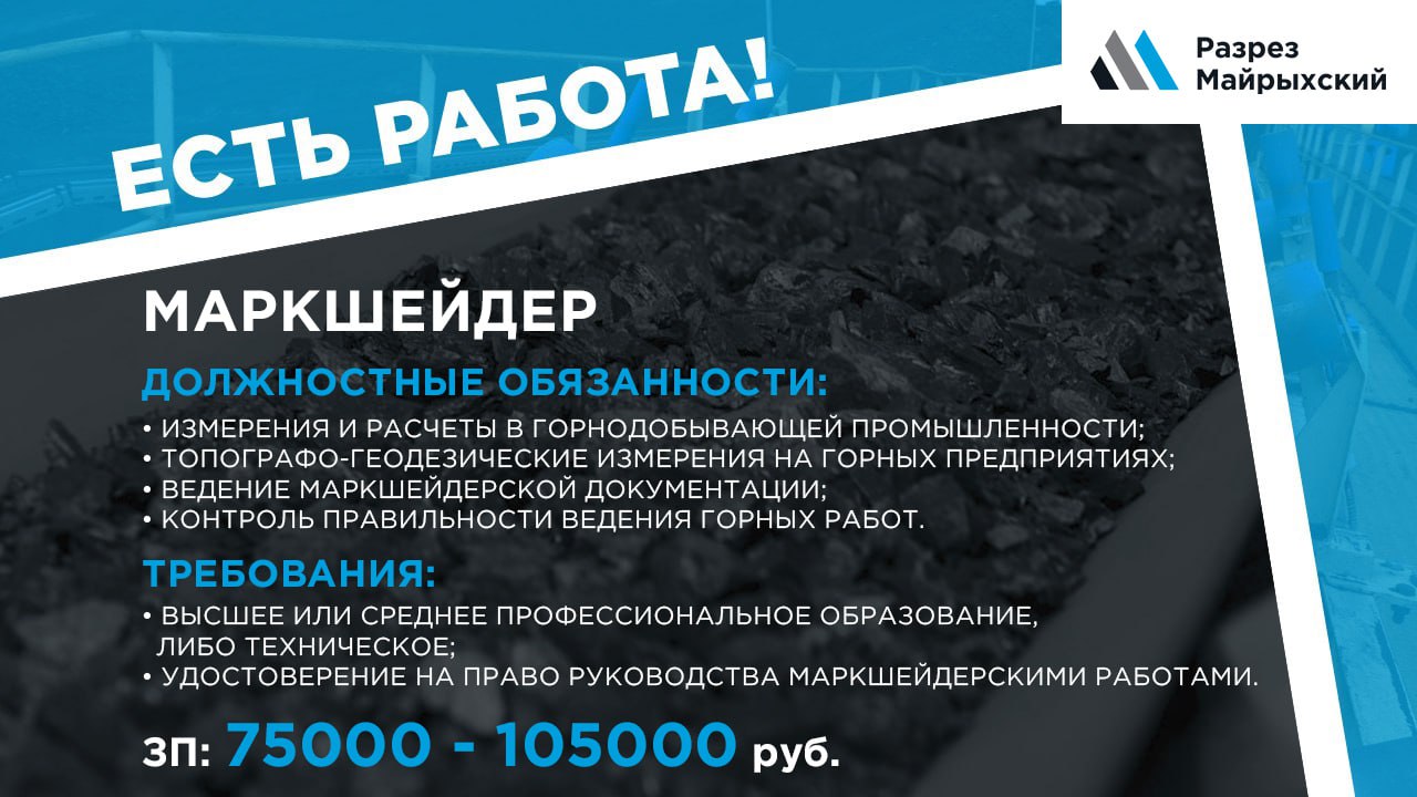 Разрез Майрыхский ищет на постоянную работу маркшейдера. Официальное трудоустройство, стабильная зарплата, полный соцпакет.