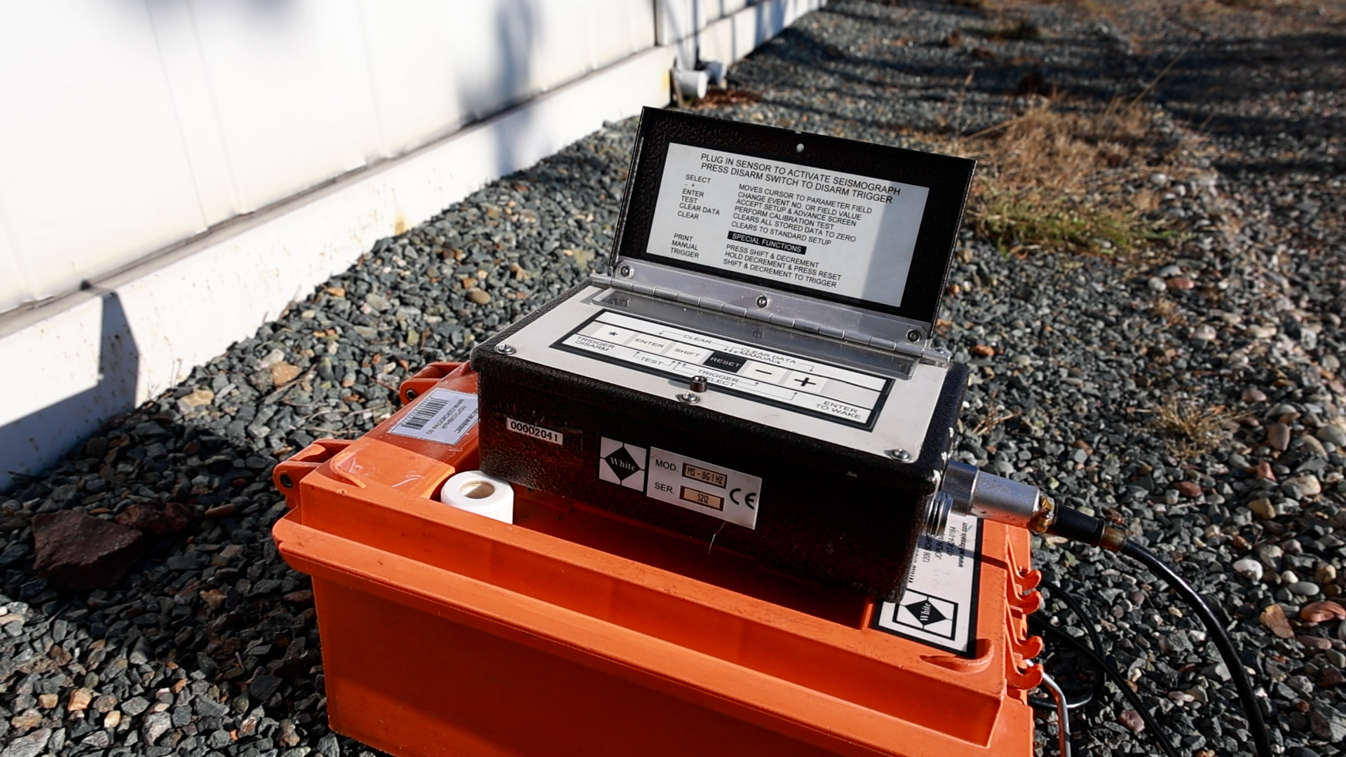 Для регистрации скорости перемещения грунта во время проведения взрывных работ используется сейсмограф. Прибор устанавливается и запускается вблизи охраняемых объектов.